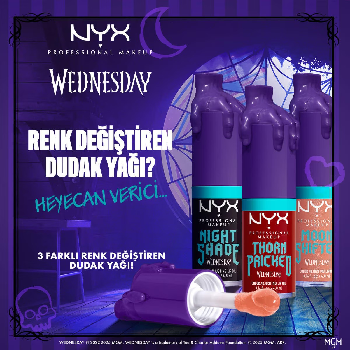 روغن لب مرموز Nyx Professional Makeup Wednesday با فرمول سبک و مغذی، لبها را نرم و مرطوب میکند و جلوهای براق و سالم به آنها میبخشد. این محصول خشکی لب را کاهش داده و لطافت و درخشندگی طبیعی لبها را حفظ میکند.