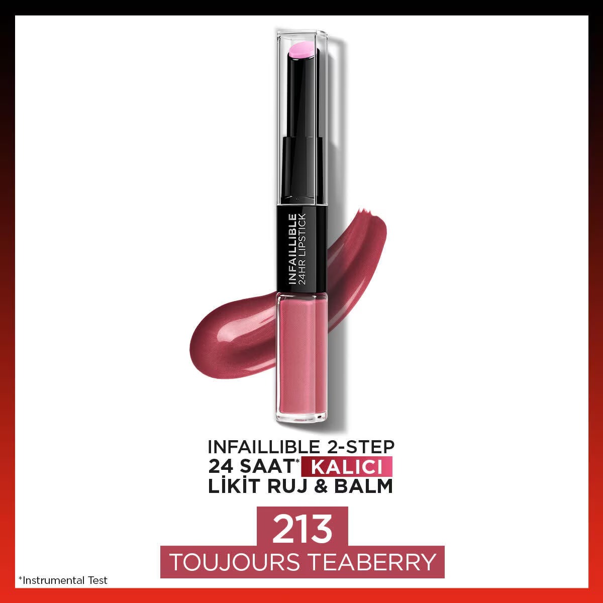 رژ لب مایع بادوام ۲۴ ساعته لورال پاریس مدل Infaillible 2 Step شماره ۲۱۳ با رنگ توت فرنگی